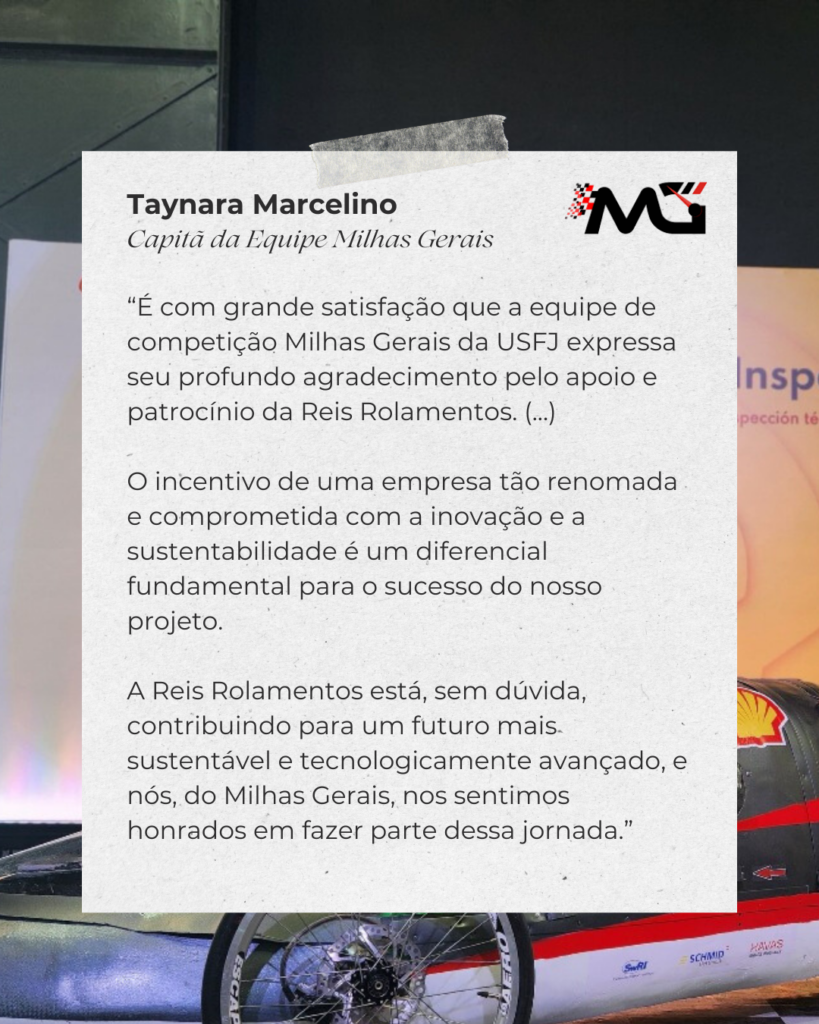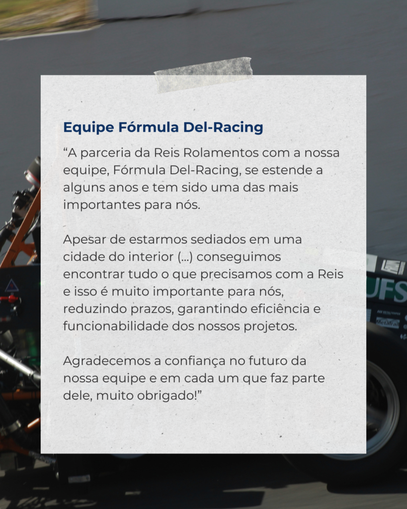 Para a Reis Rolamentos, apoiar esses projetos vai além do fornecimento de peças. É uma forma de contribuir diretamente para a formação prática de futuros engenheiros, permitindo que o conhecimento técnico saia da teoria e ganhe aplicação real. Ao disponibilizar componentes e materiais para a construção e desenvolvimento de protótipos, participamos ativamente de um processo que envolve estudo, testes, ajustes e evolução contínua.
